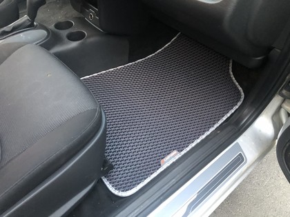 Автоковрики ЕВА не впитывают, а удерживают грязь в ячейках. Вода не катается по полу, как в резиновых половичках, однако, её все равно видно. ЕВА удобны тем, что их легко достать не пролив и вытряхнуть. Они дешевле.