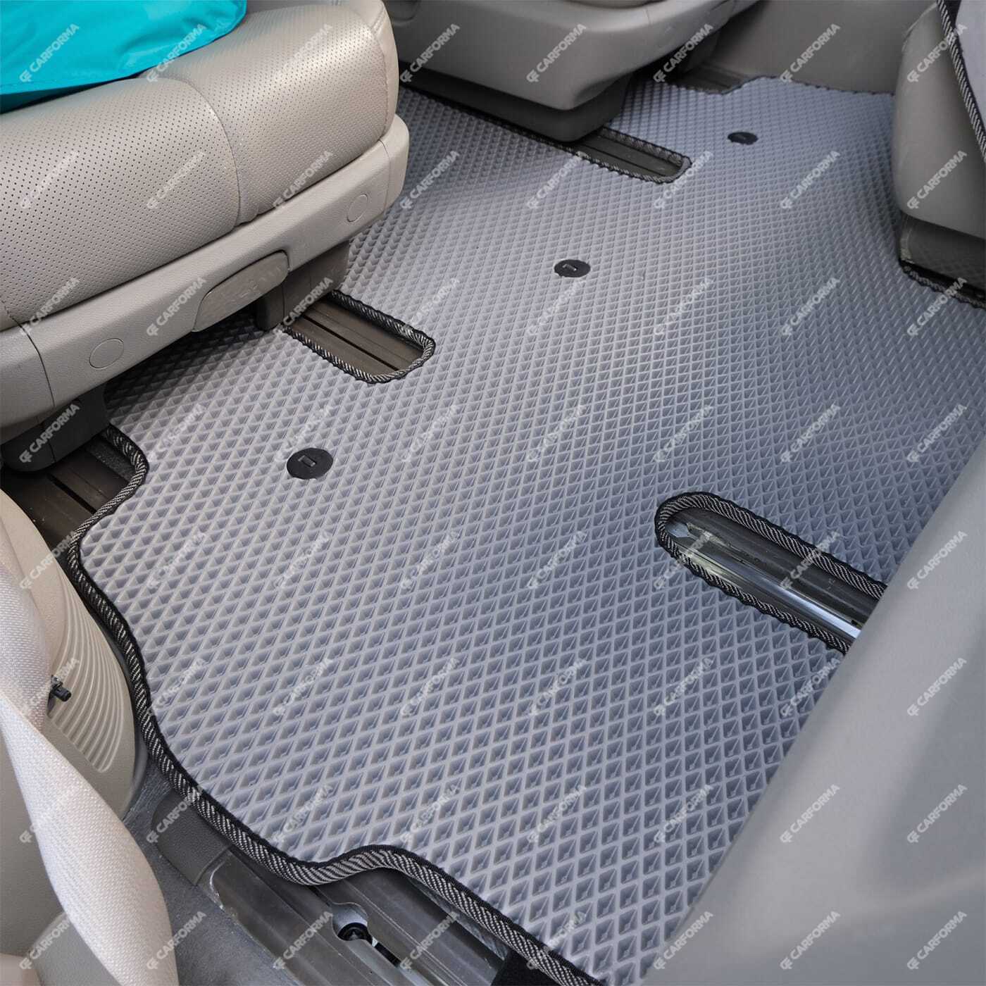 - Соответствуют оригинальным размерам и формам пола салона KIA Carnival III 9 мест и 11 мест, что позволяет максимально эффективно использовать пространство автомобиля.