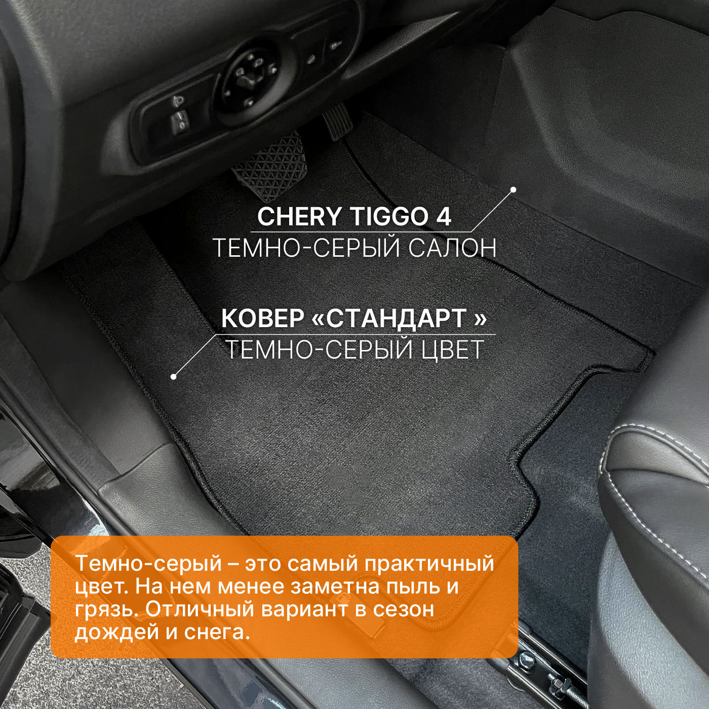 - Передние ковры полностью закрывают место под левую ногу водителя (зависит от авто)
